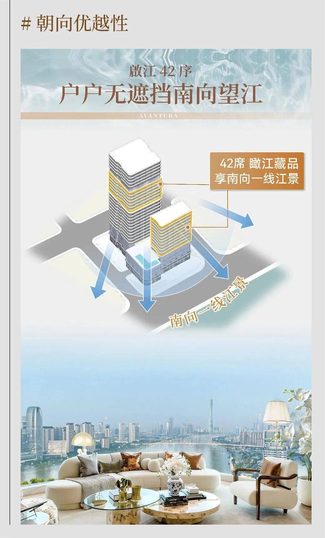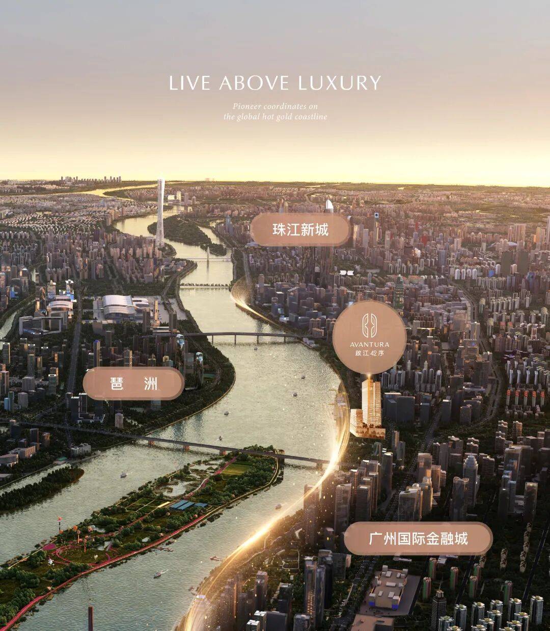 啟江 42 序(Avantura)是广州尚品宅配家居股份有限公司深耕高端定制领域 27 年后,落子国际金融城的先锋生活启新作品。项目以 “逐新品位” 为核心理念,选址金融城东区起点位,占据珠江 “至贵 1 英里” 临江岸带 —— 这片约 8 平方公里的国家级战略区域中,仅 0.3% 土地留存为一线亲江生活用地,而啟江 42 序正是此稀缺板块内最后一块可售南向亲江住宅项目,专为 42 位卓尔不凡的塔尖人士量身定制,重新定义粤港澳大湾区顶奢生活标准。