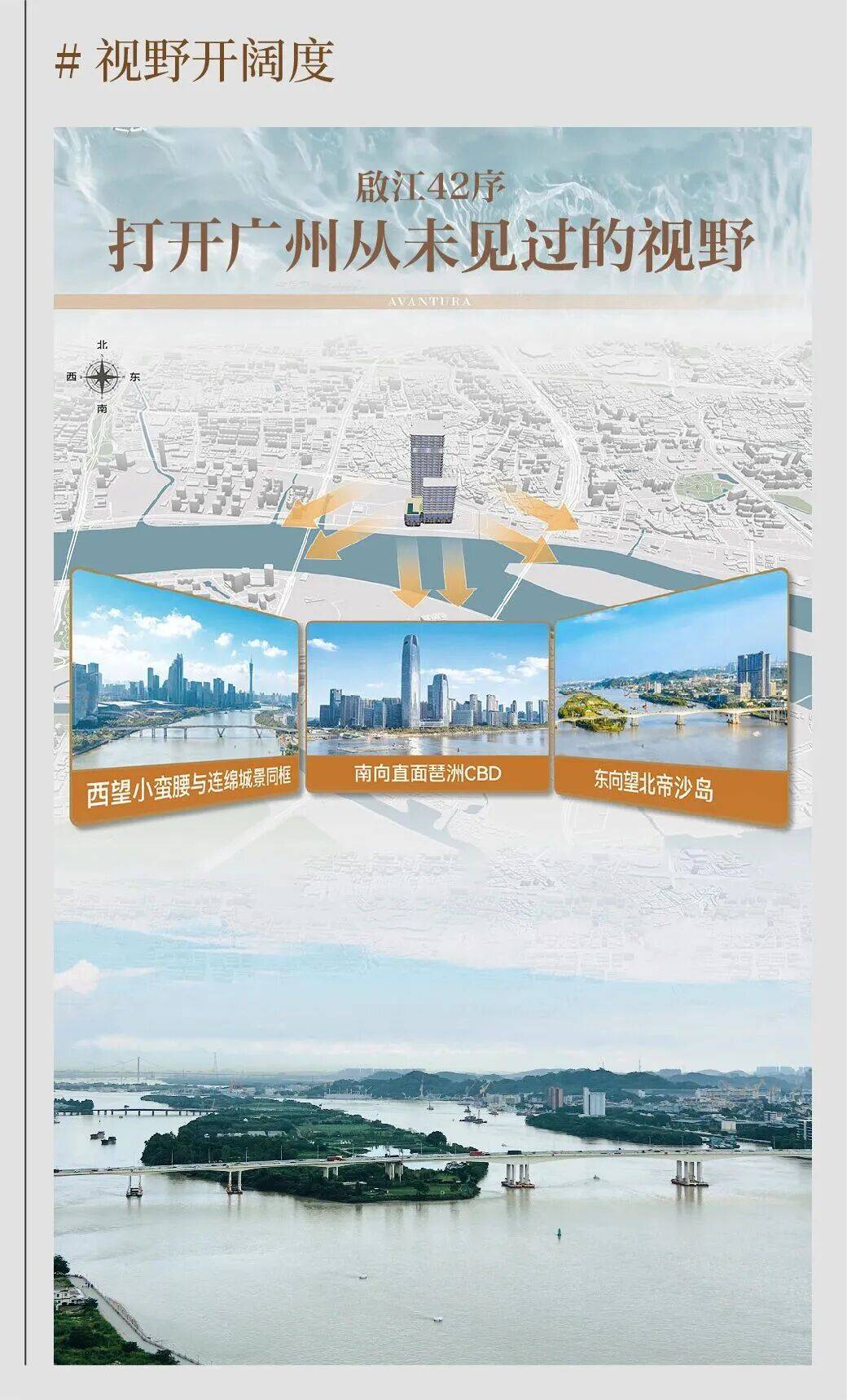 向南对望从琶洲之眼到小蛮腰的城市天际线,向西收藏金融城-珠江新城地标建筑群