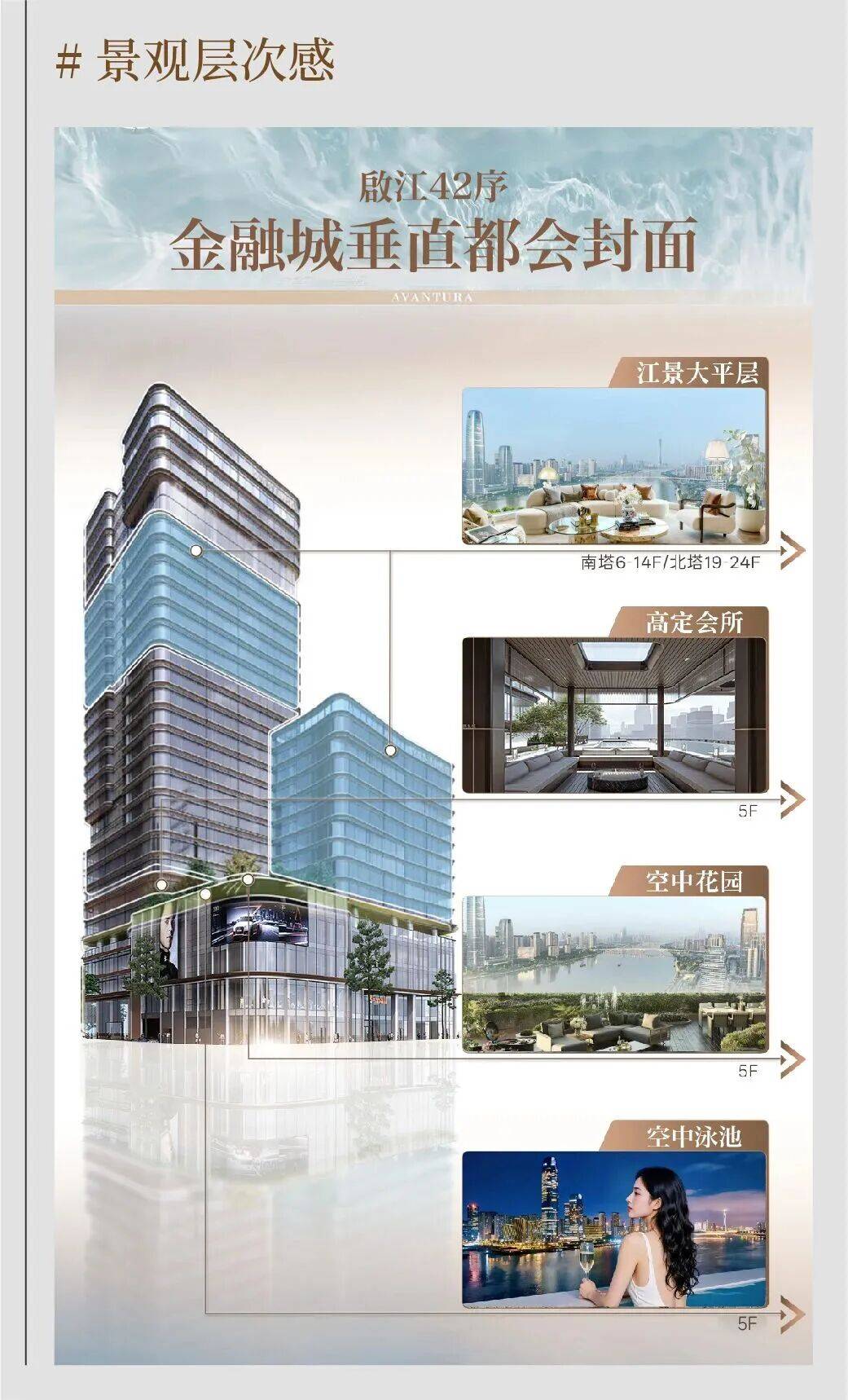 :打造 “启江会” 会员制先锋生活俱乐部,提供高尔夫球会等定制化私享服务,更配备 270° 江幕会所,成为塔尖圈层的社交枢纽。