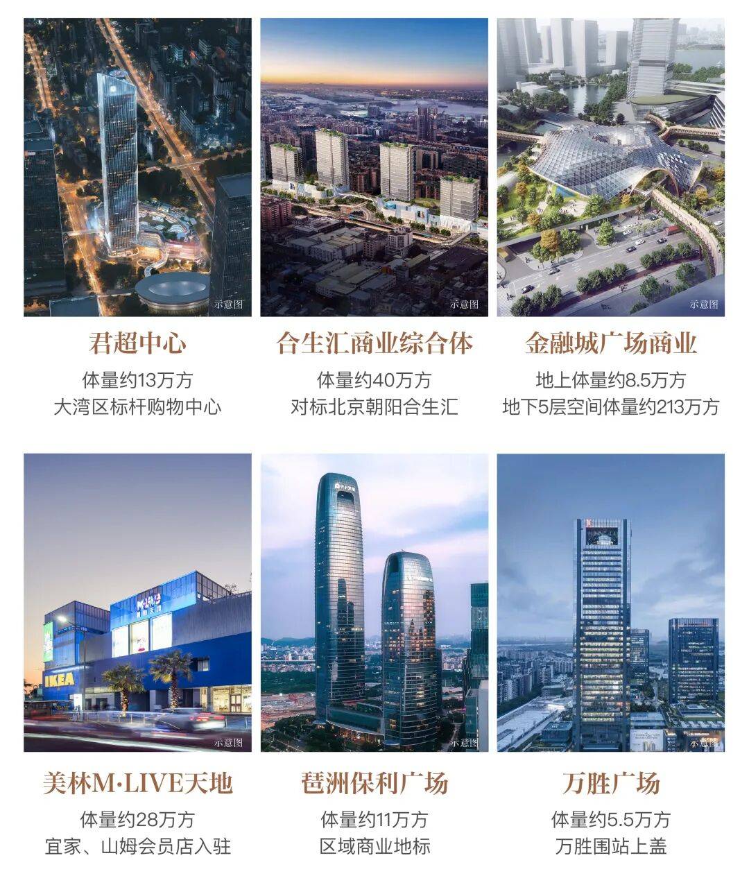 约3km内金融城广场、合生汇、君超中心、美林M·LIVE天地、山姆会员店、万胜广场等醇熟商业环绕,近享不落幕的璀璨生活