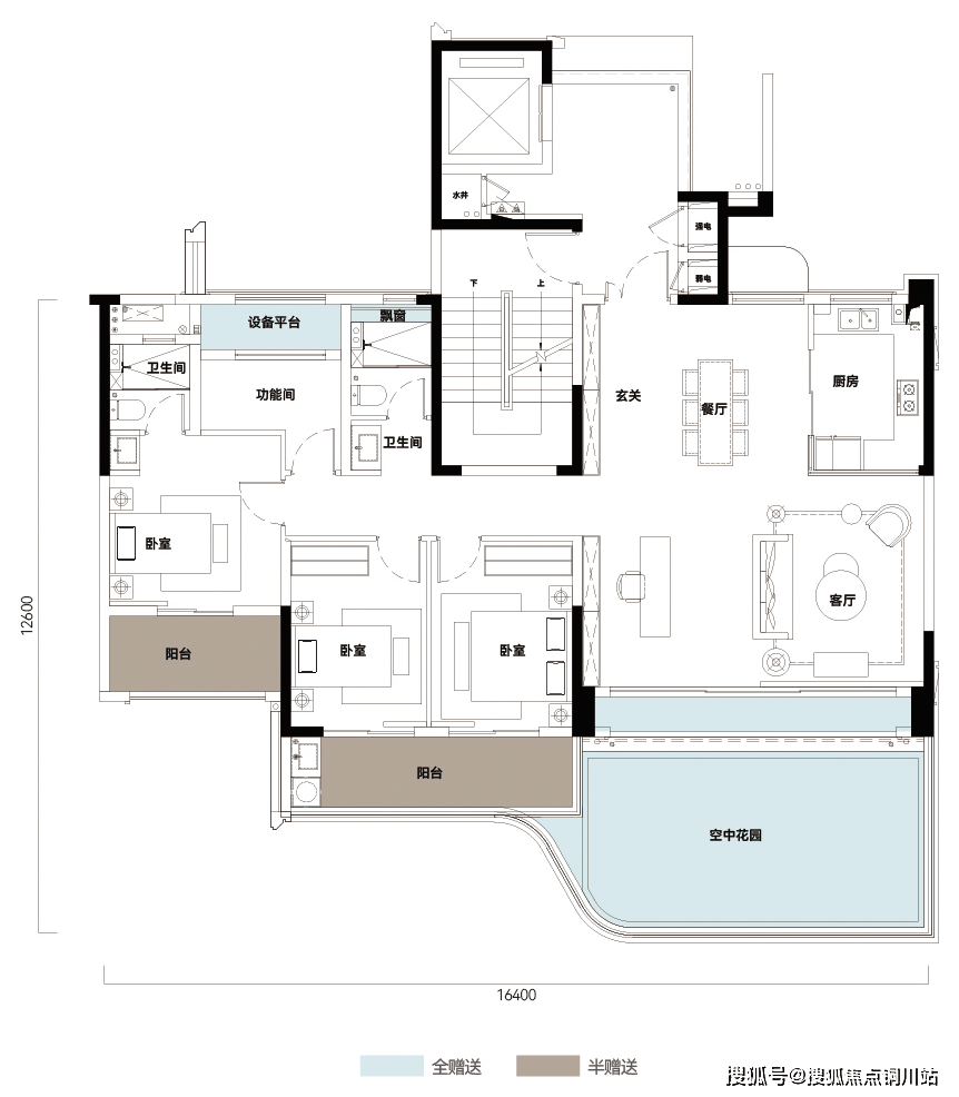 以即将面市的伍投·璞境建面约150平米的四代洋房户型为例,阳台+空中花园+设备平台+多飘窗+独享电梯前室的多赠送空间设计,合计拓展面积最高约能达到55平米(南北露台户型存有区别),实际空间可使用率高达约123%。而在部分135-159平米的底跃户型中,实际可使用率甚至可以达到约281%。