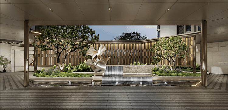 ①体验进阶:入户归家,尊崇仪式感入口处,莫奈森林石材与贝金米黄奢石碰撞,像是春日永恒的嫩绿,极具品质感,雅而不俗。