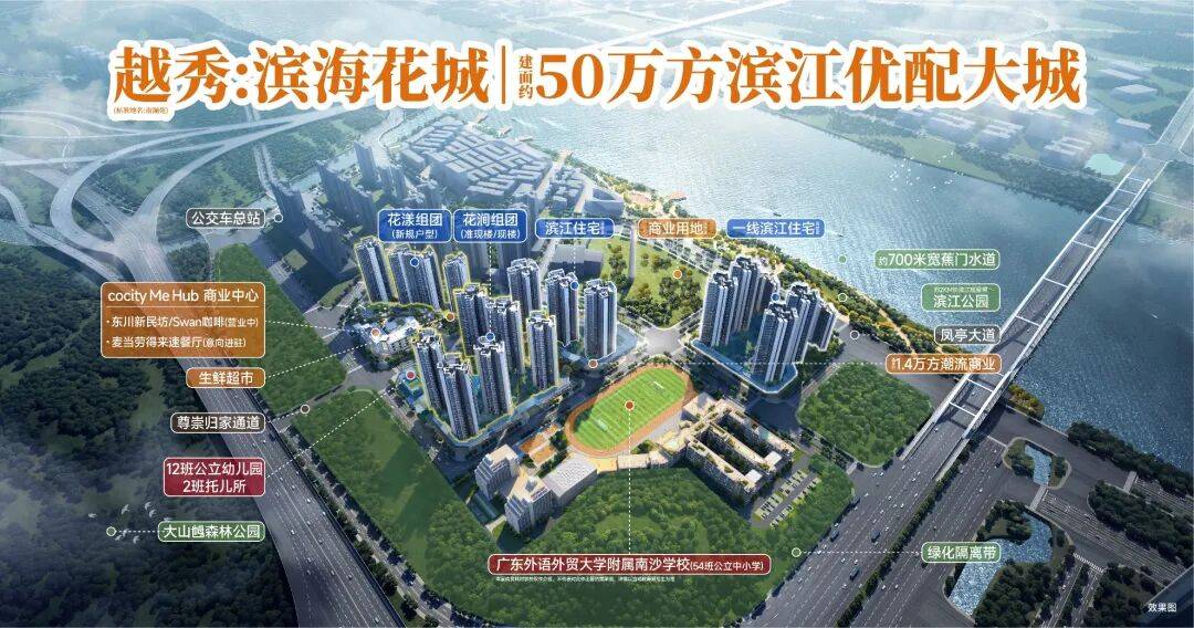 ✅越秀滨海花城官方营销中心专属热线班九年一贯制中小学,携手广外教育集团,2025年移交给教育局,家门口轻松解决2-15岁教育难题;