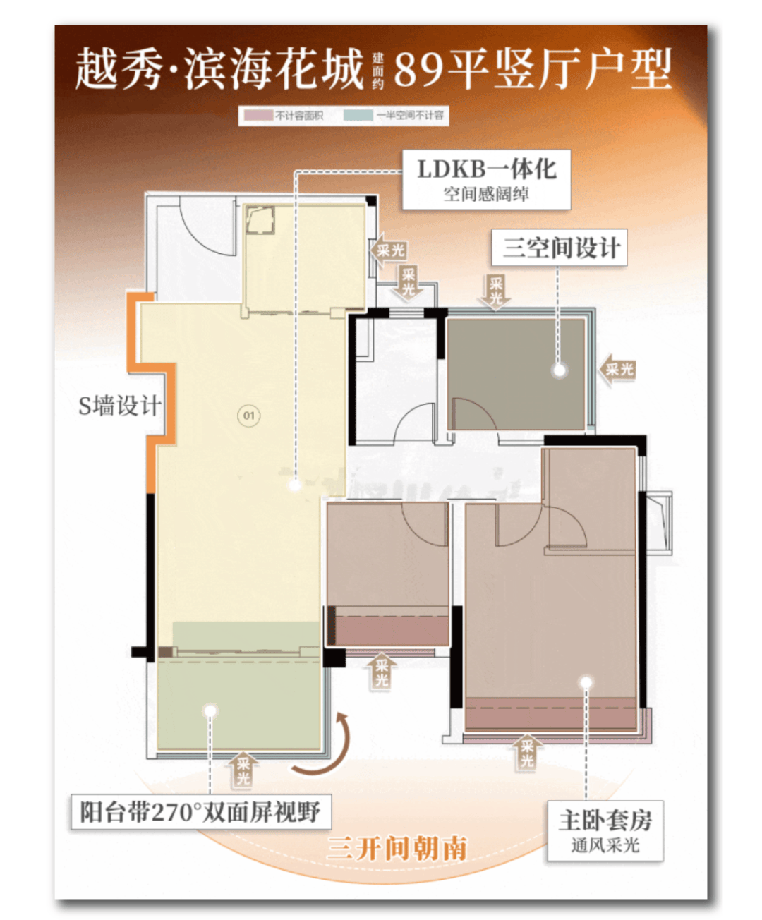 (售楼处直接对接|无中介干扰|24 小时 1 对 1 咨询|购房全流程专人协助|楼市政策实时解读|房源状态透明查询)✅越秀滨海花城官方营销中心专属热线:竖厅主打一个实用性很强,动静分区合理,公区同样采用了LDKB设计